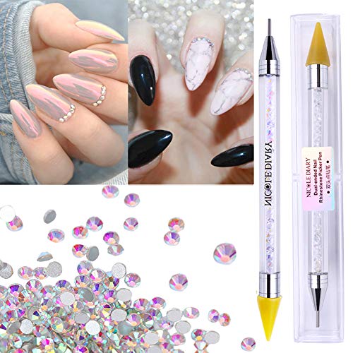 6.) NICOLE DIARY Dual-ended Crystal Rhinestone Wax Picker Pencil with Self-Adhesive Dot Head Tips Flat Back Rhinestones Gems Embellishments for Nail Face Body Art Crafts DIY Festival Face Gems